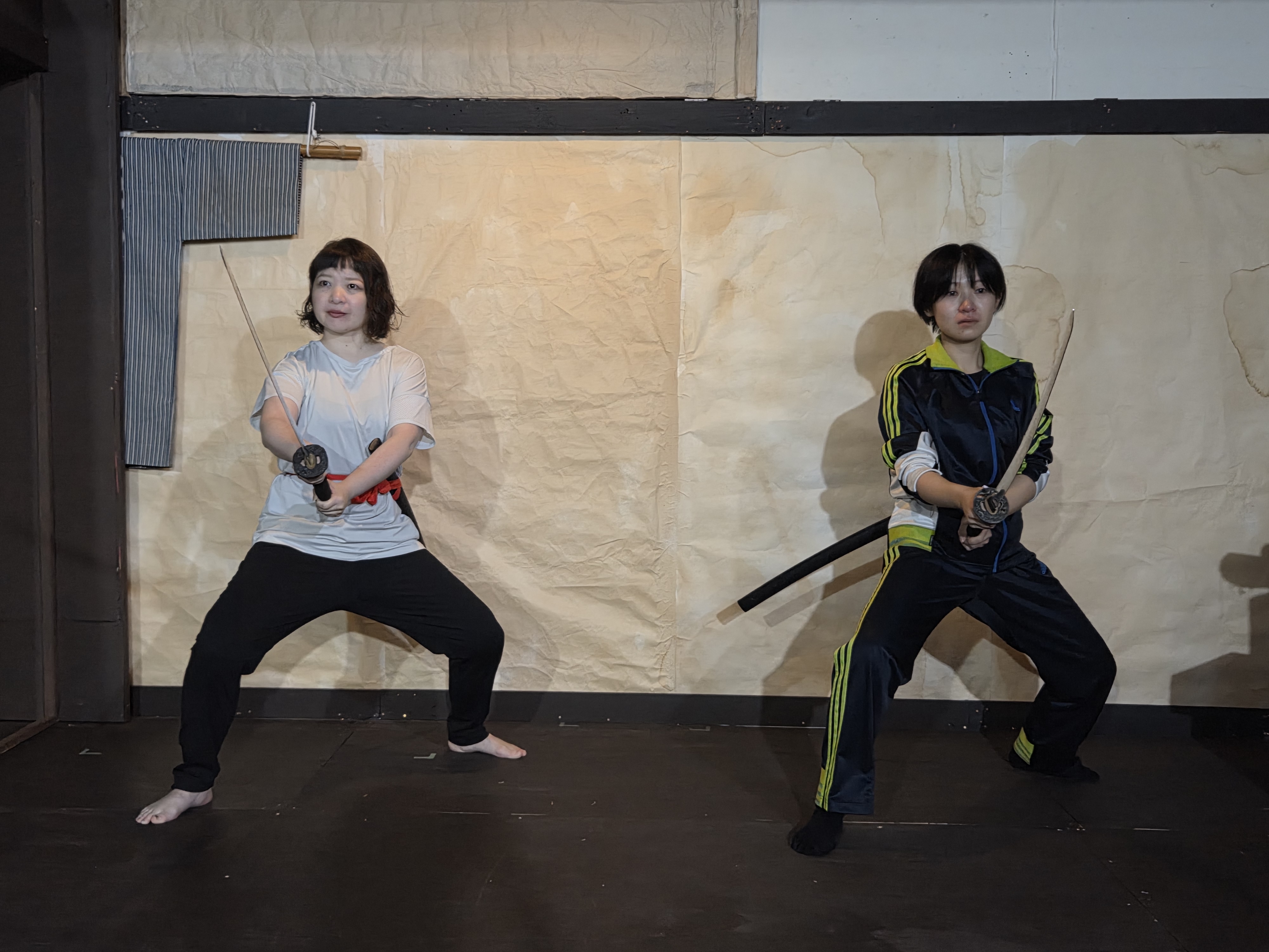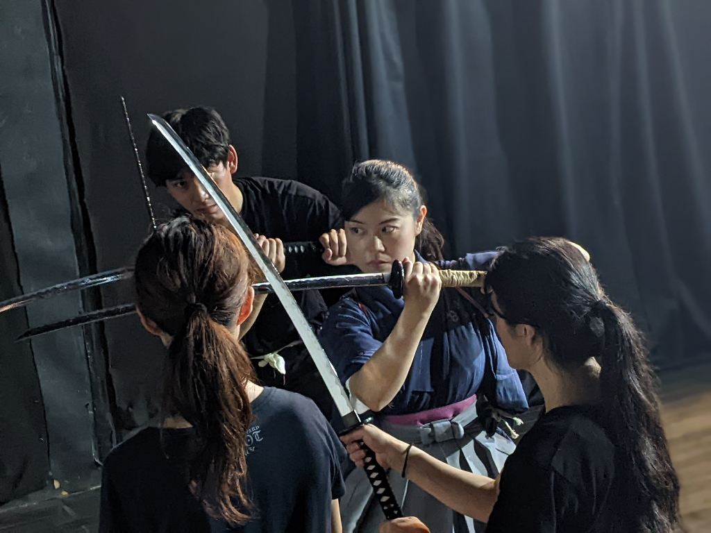 真剣と同じ重さの模造刀を使用しての本格的な殺陣教室です。